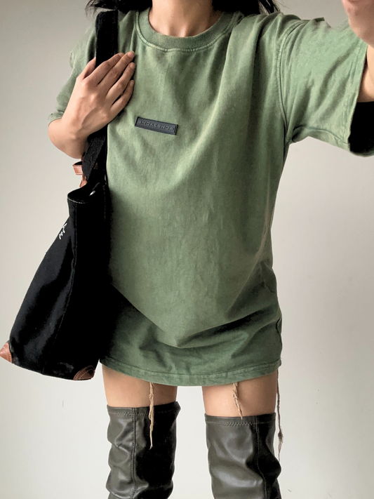 • Olive Stone Wash heavy weight UNISEX Oversized Tshirt