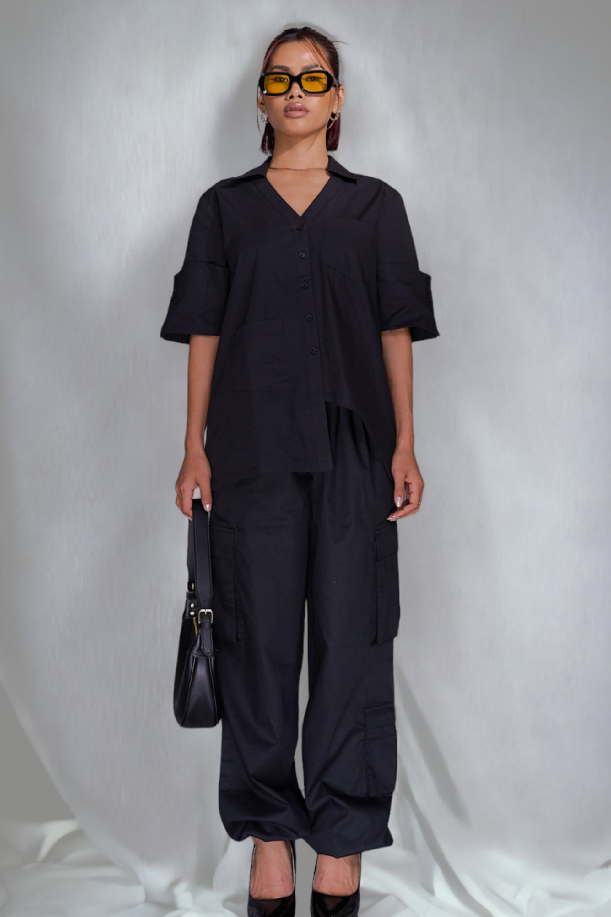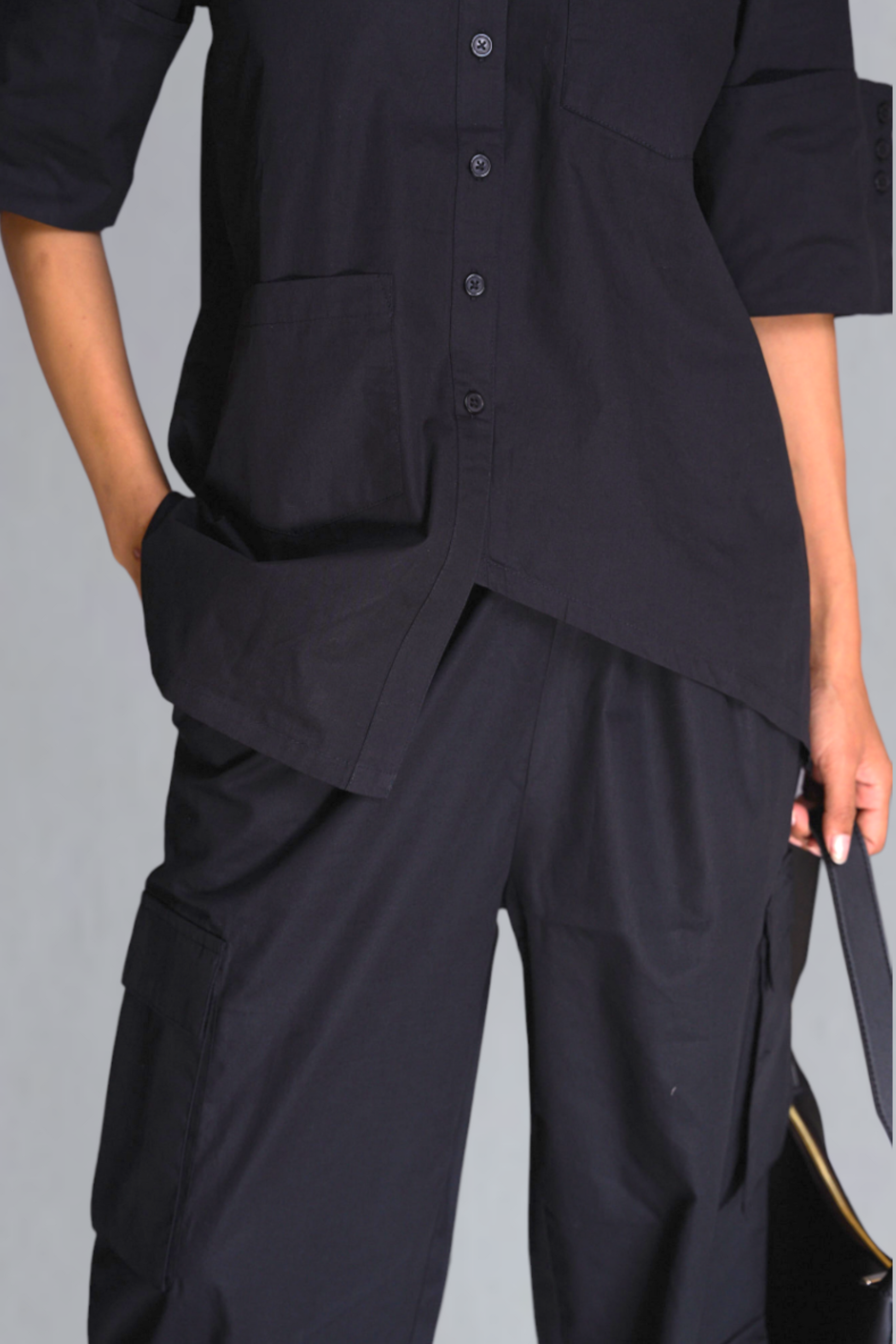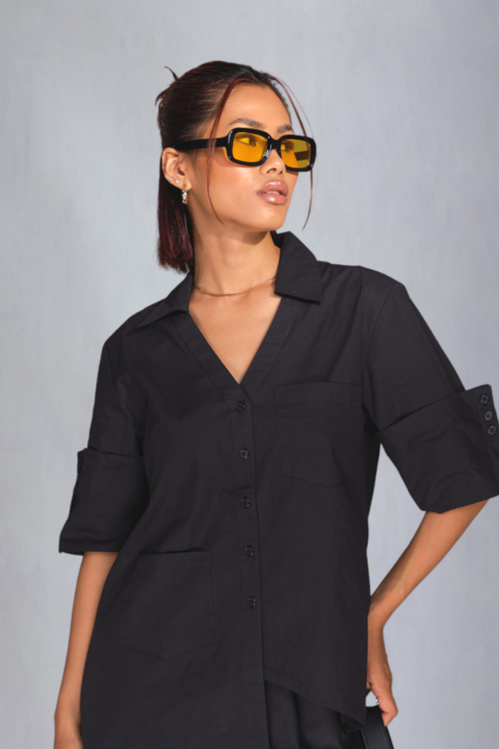 A wide v-neck and exaggerated cuffs bring much-needed oomph to the breezy feel of its comforting organic cotton silhouette and rejuvenate timeless styles for the new age woman.