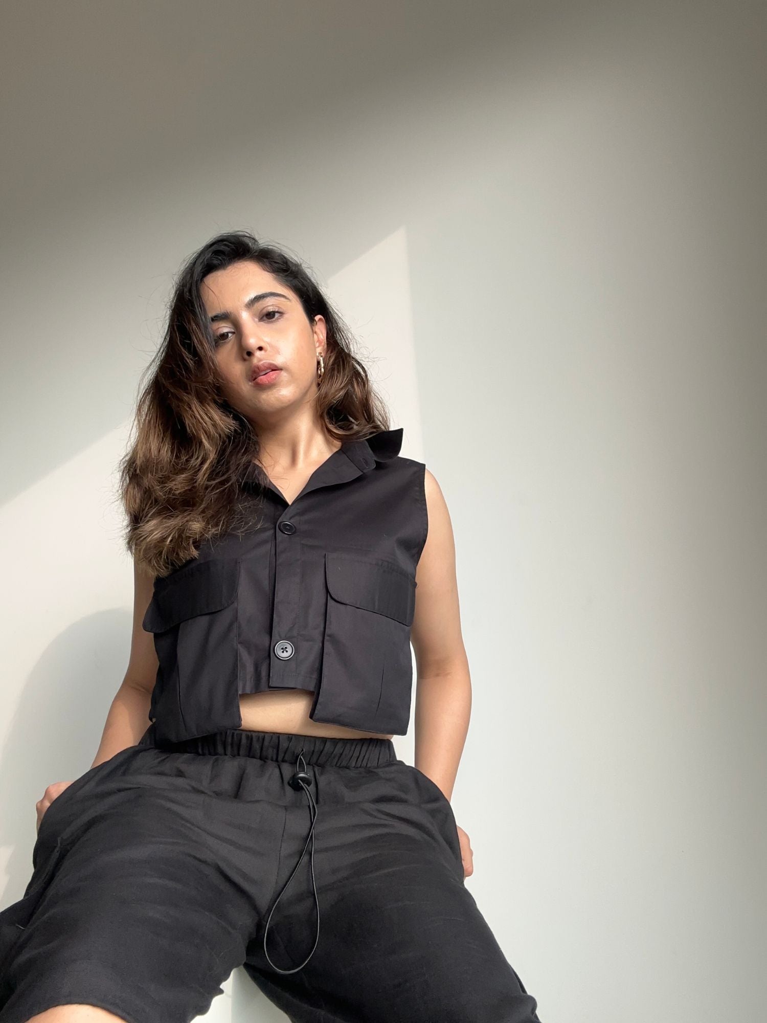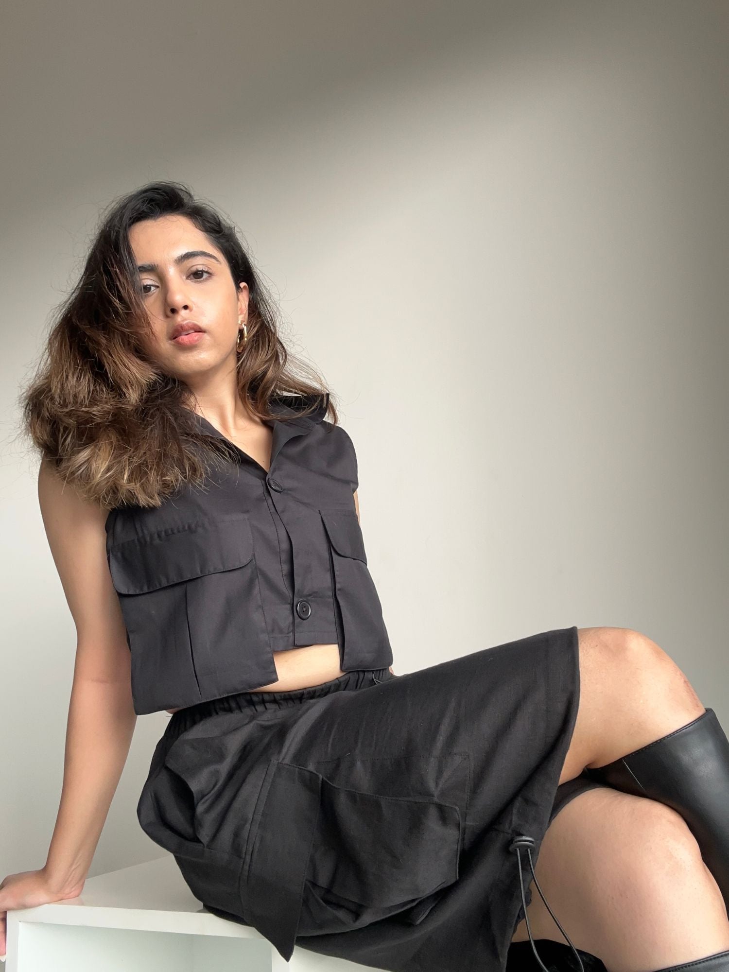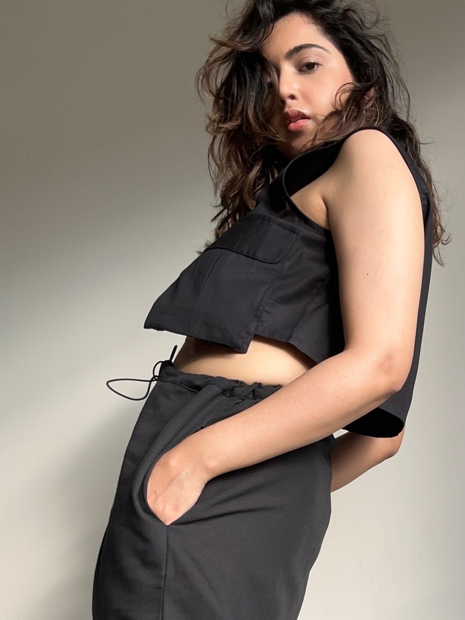 Nelle Pocket Cargo Crop Top Black